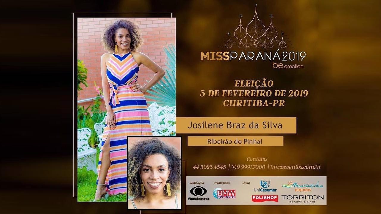 A jovem que é estudante de história está com expectativas positivas e sente estar vivendo um momento muito especial. "Nunca imaginei participar de um concurso tão grande como é o Miss Paraná Be Emotion. Estou muito emocionada e já me sinto uma vencedora. Quero conhecer pessoas, ajudar e ser ajudada. Felicidade e gratidão define tudo isso e coloco nas mãos de Deus", enfatiza Josilene.